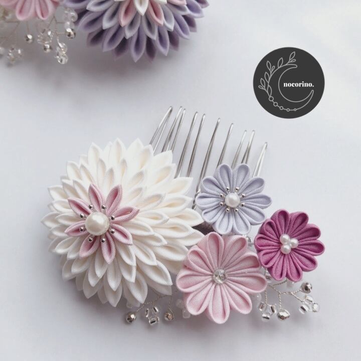 こちらはコームタイプの髪飾り大小のセットです。