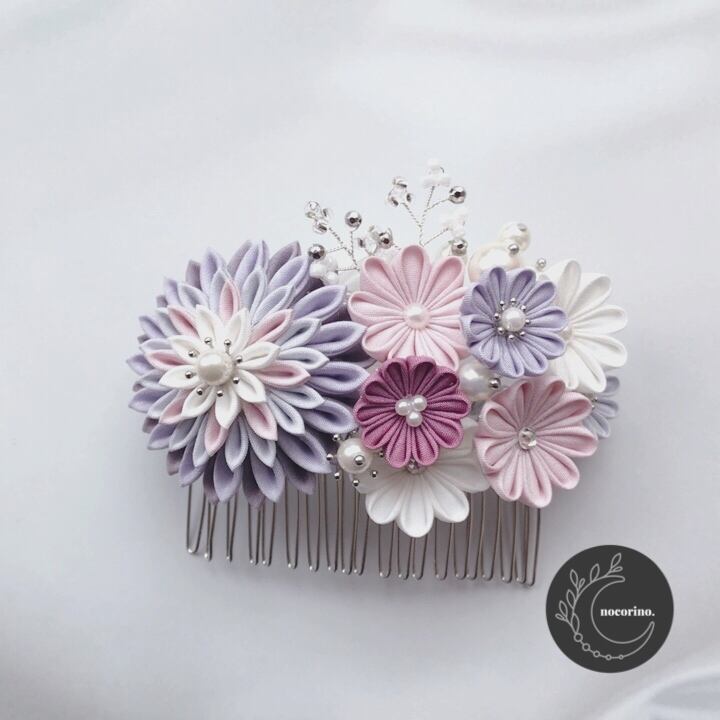 パープルとピンクのお花をメインに小花を散りばめた髪飾りです。