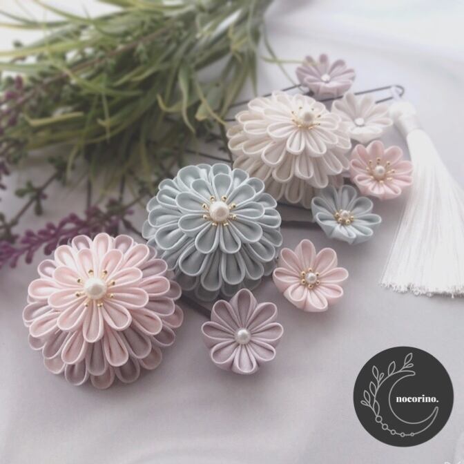 こちらはUピンタイプの髪飾り9点とタッセルのセットです。