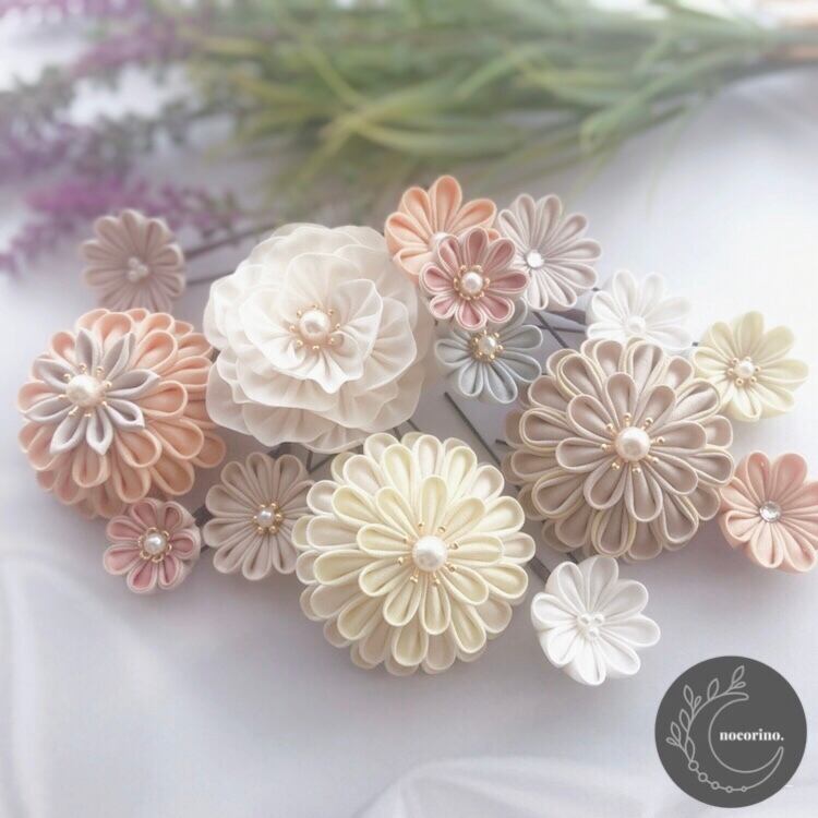 こちらはコームタイプの髪飾りとUピンのお花大小のボリュームあるセットです。