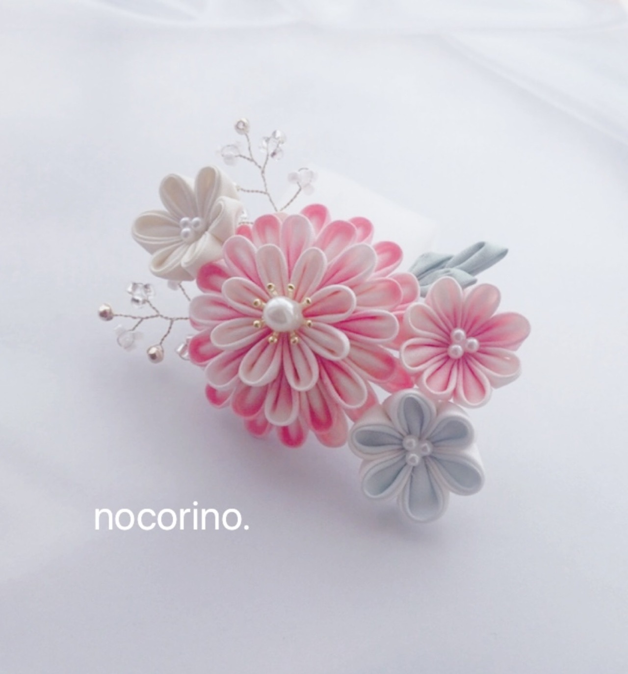 メインのお花はピンク系のグラデーション染めにして可愛いく仕上げました。