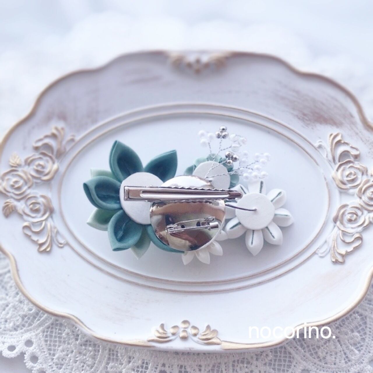 ヘアクリップですので、ショートヘアの方でも飾りやすくなっています。