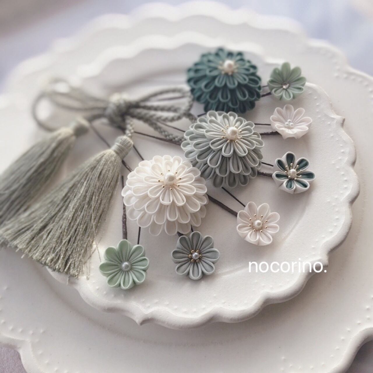 こちらはUピンタイプの髪飾り9点とタッセルのセットです。