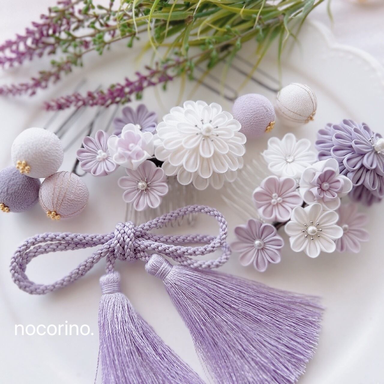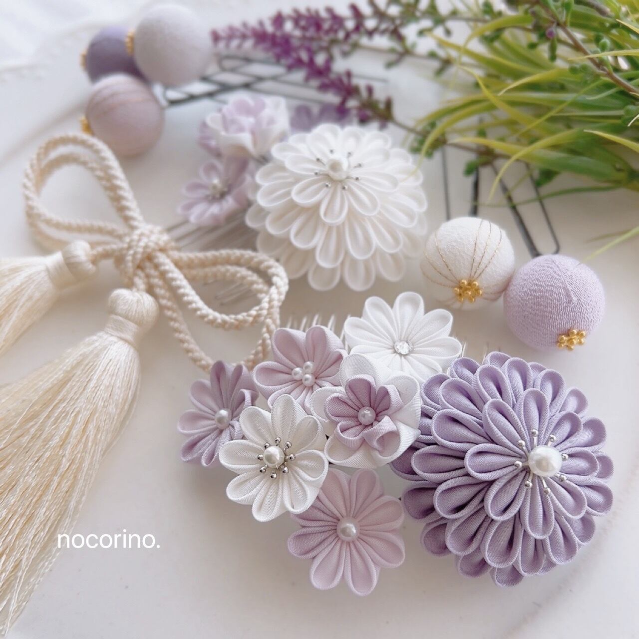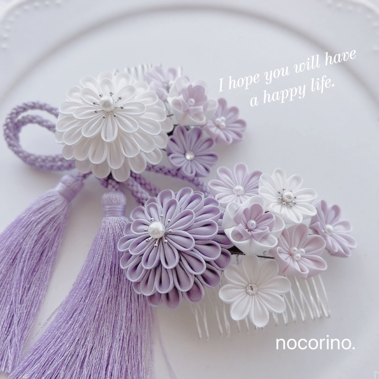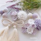 紫と白で全体をまとめた、大人かわいい髪飾りです。