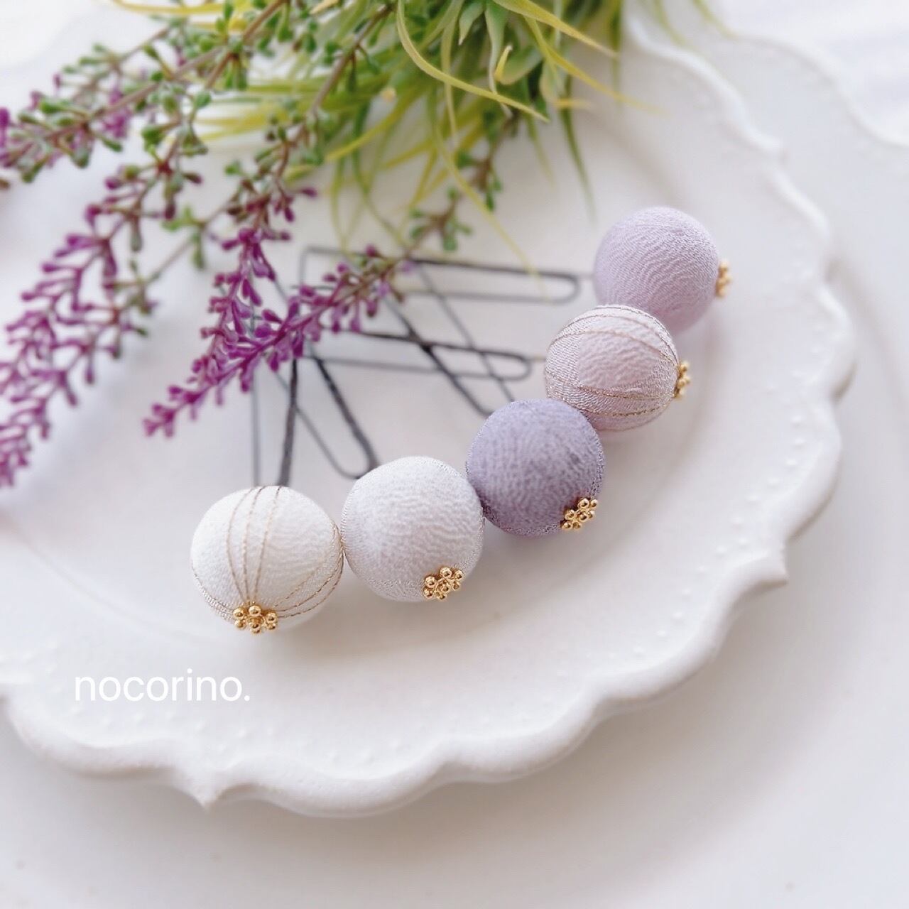 絹100%の丹後ちりめんを使用し、紫系のお色味でまとめた和玉かんざしです。